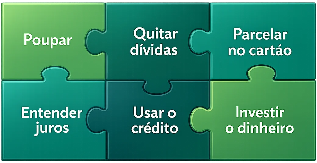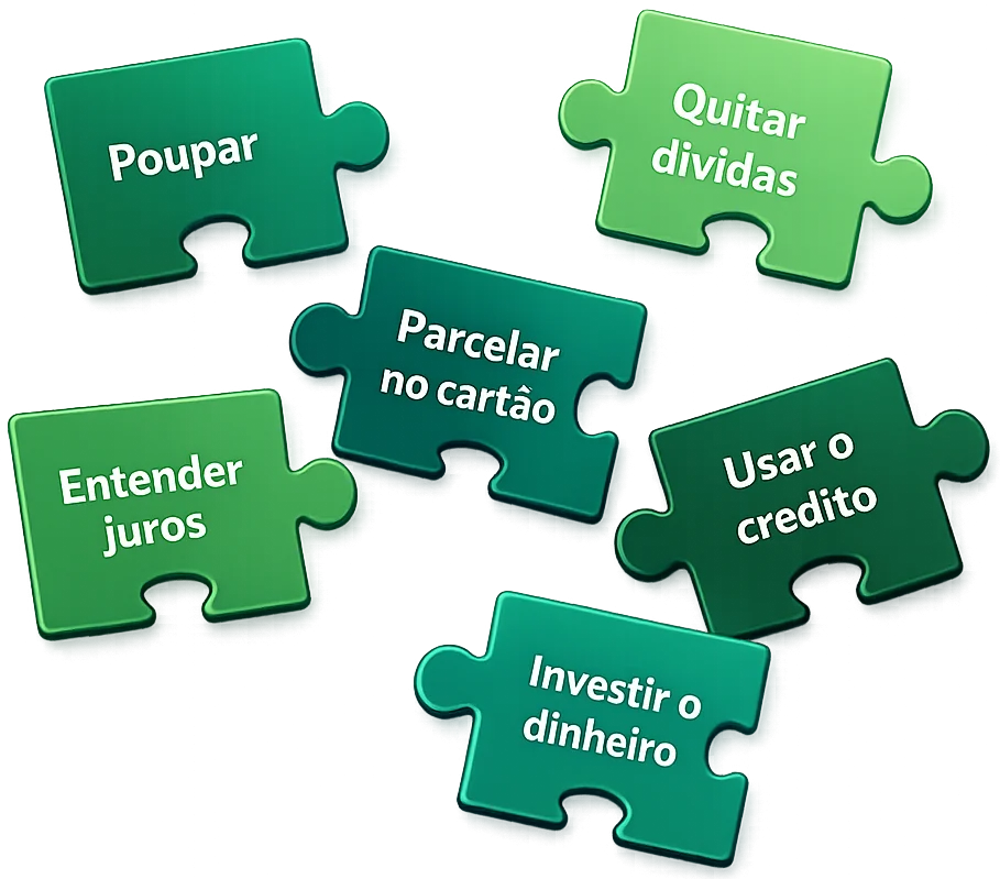 Um curso direto ao ponto, com aulas curtas e práticas. São 3 módulos para você ter uma relação melhor com o seu dinheiro.