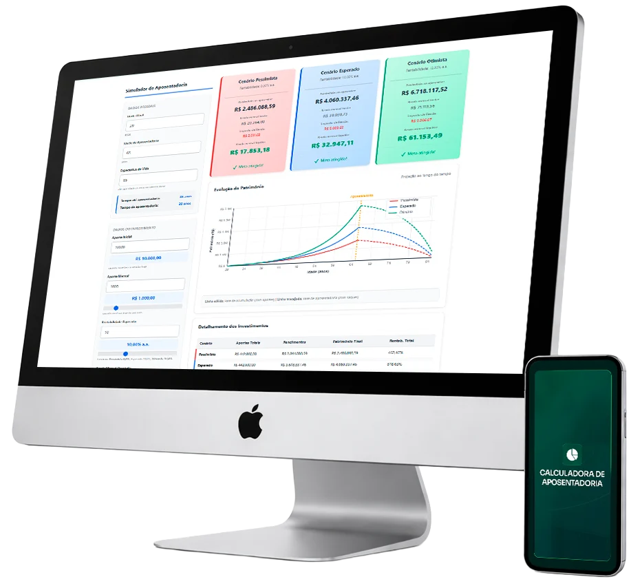 Faça a simulação gratuita com base nas regras atuais e descubra quanto você precisa investir por mês para não depender só do INSS.